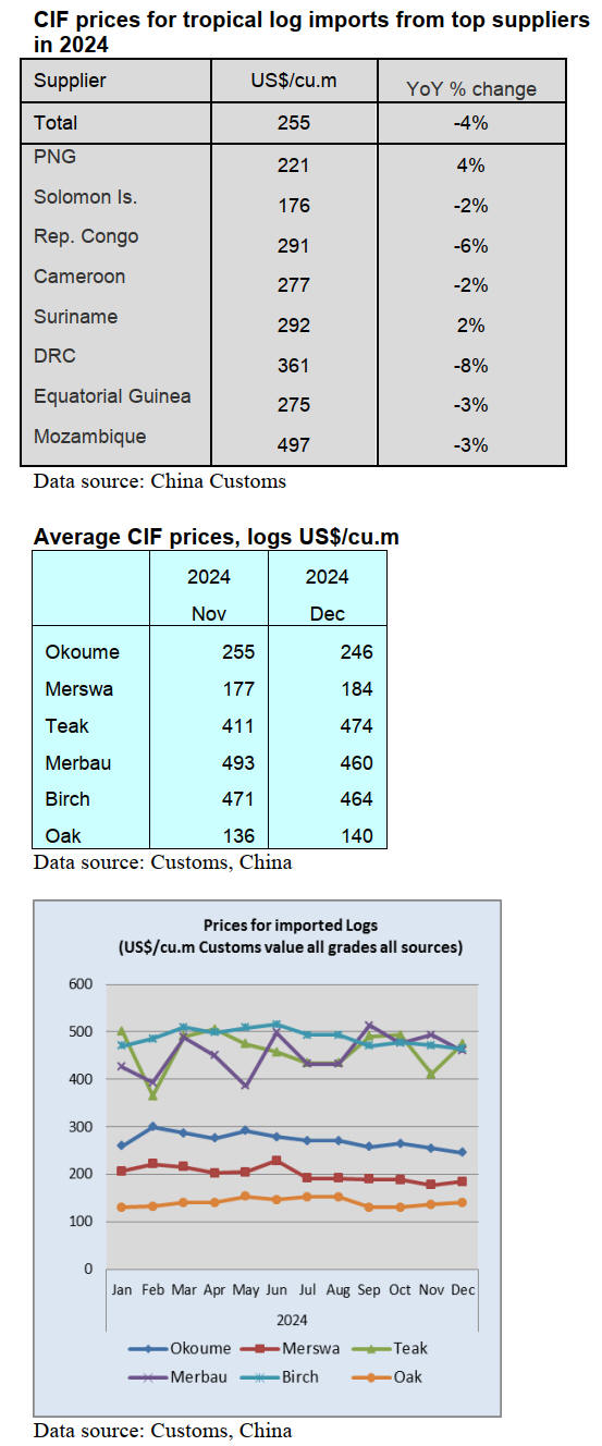 was US$255 (CIF) per cubic metre, down 4% on 2023.