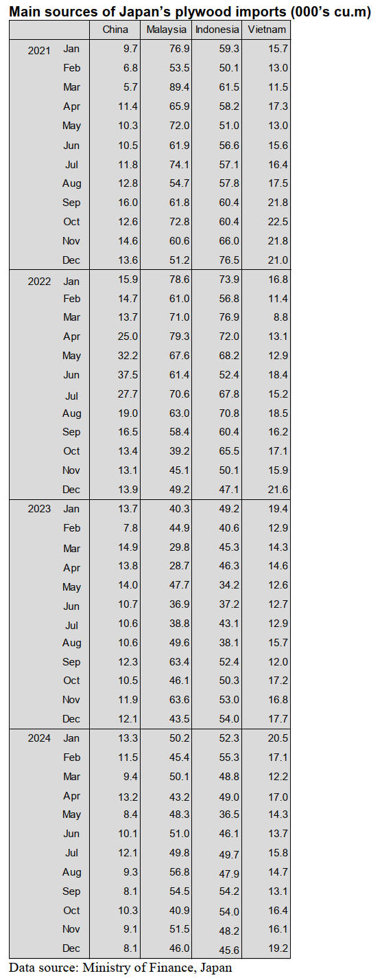 Imported plywood is 2,000,000 cbms, 6.2 % more than