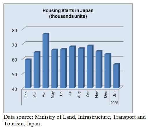 plywood production in February, 2025 is low due to less