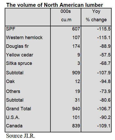 South Sea lumber from Indonesia is 46,164 cbms, 2.7 %