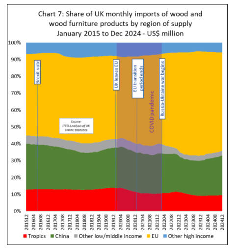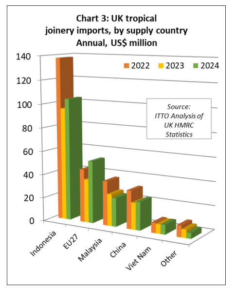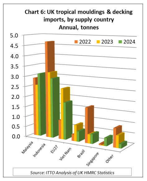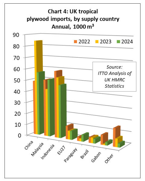 In 2024, the UK imported 383,200 tonnes of tropical wood