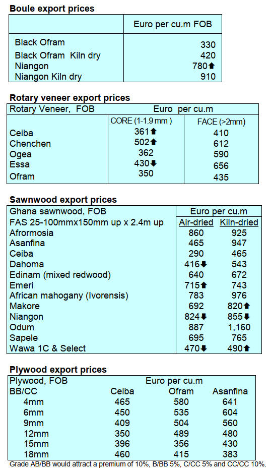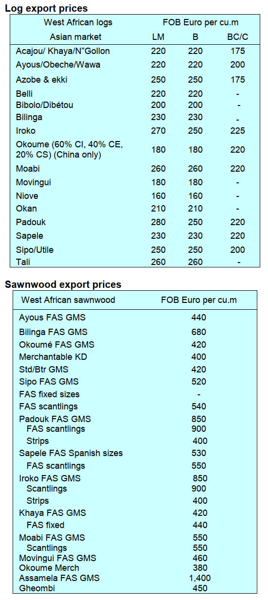on Okoume prices but orders for Andoung and Iroko