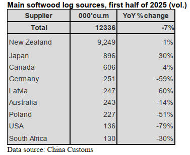 China’s log imports from Japan rose 29% to 897,000 cubic