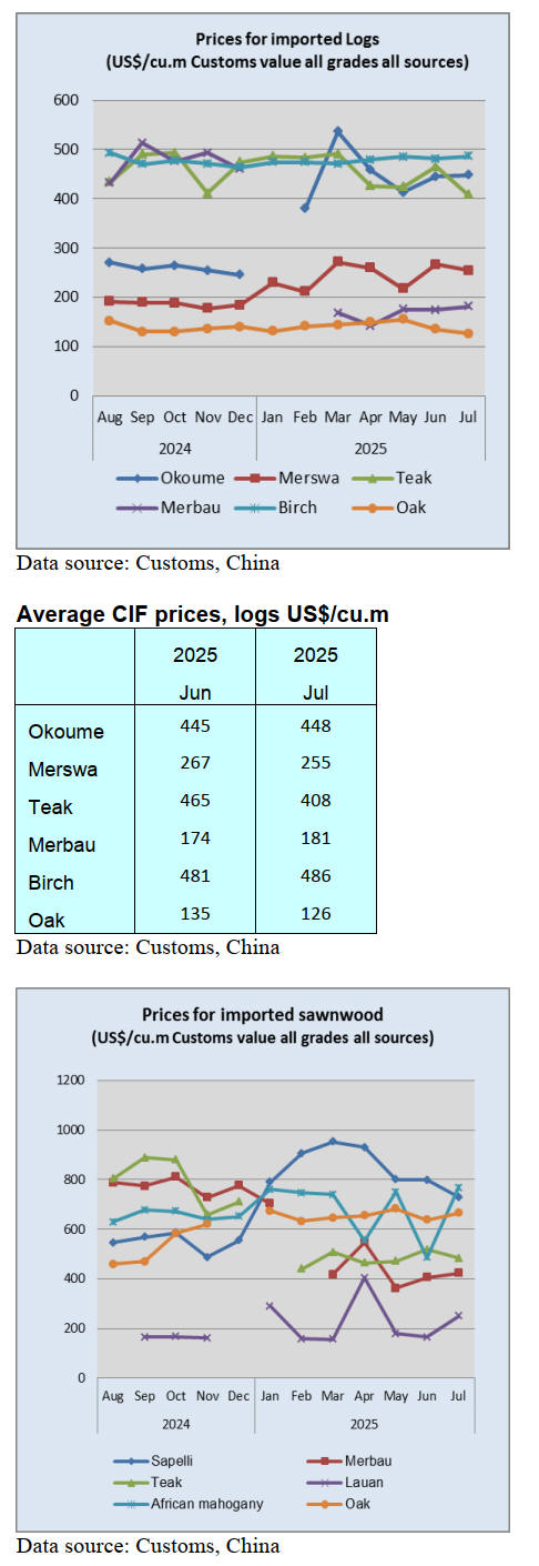 CIF prices for tropical sawnwood fell 5% to US$278 per