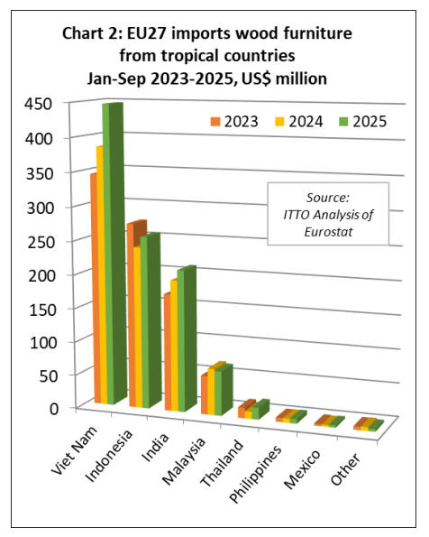 EU27 import value of tropical wood and wood furniture in