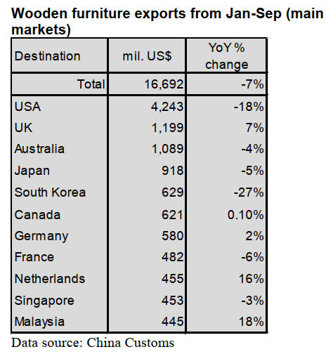 furniture exports. 25% of China’s wooden furniture was