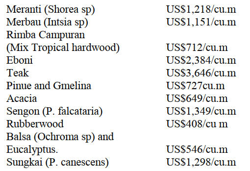 dimensions of Afzelia (40 × 40 cm and 50 × 50 cm) were