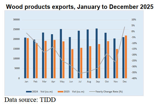 Wood product exports drop over 20% to US$62.2