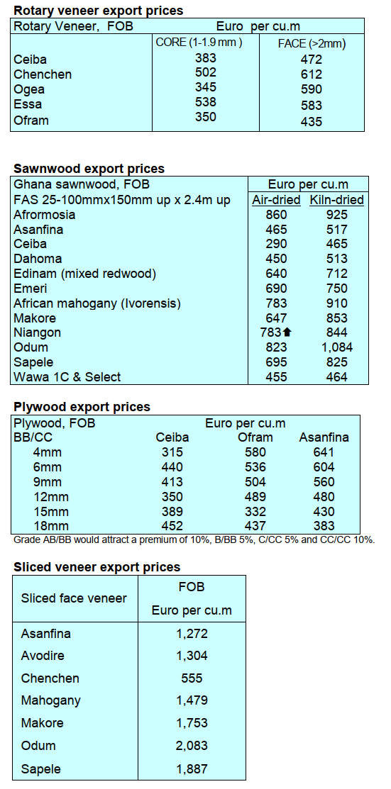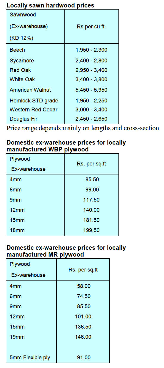 prices due to extremely limited log supply. Heavy rains