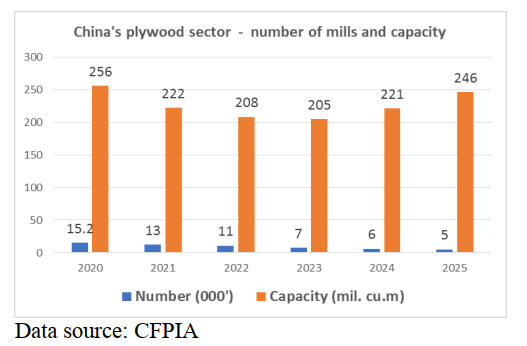 Plywood production capacity in 2025