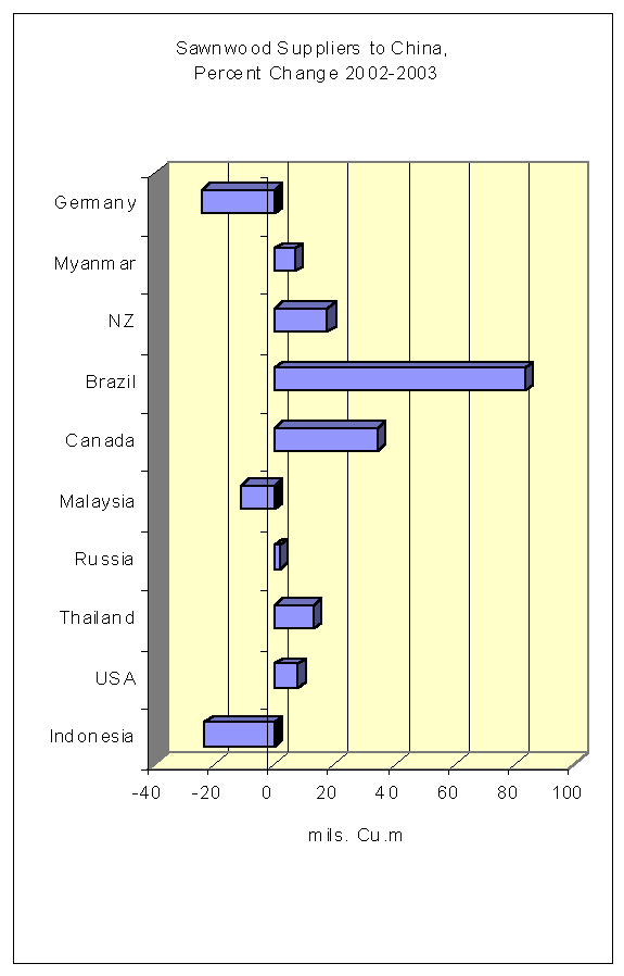 quality Korean Pine, increased to Yuan 1450 from Yuan 1350 per cubic metre. Prices