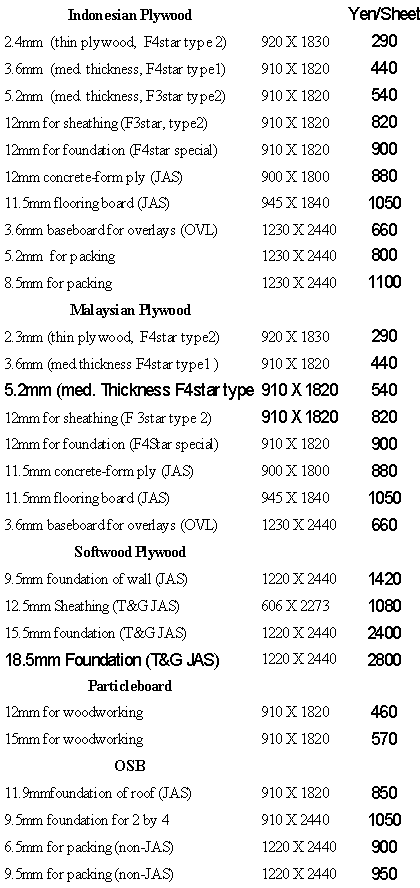 Japan Wood Products Prices Dollar Exchange Rates of 7th May 2004 Japan Yen 112.2 Report
