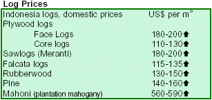 Prices for all timber products, from logs to added-value products, surged in late January due to reduced supply of these products as Southeast Asia breaks for lunar New-Year holidays. Furthermore, monsoon rains continued to affect logging and sawmilling operations in the major production areas.