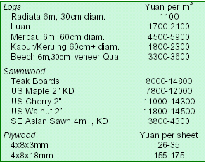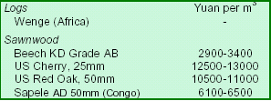 African logs lead imports in Zhangjiagang Port Taiwan¡¯s Samson Group expands in China According to a local furniture association, most manufacturers, especially panel furniture firms, have not raised furniture prices due to strong domestic competition. Only few furniture firms have adjusted the prices of their products. For example, the average price of redwood furniture had risen 30%. Analysts indicate that some of the firms producing branded furniture would increase furniture prices if raw material costs continue to rise. Shanghai Furen Wholesale Market