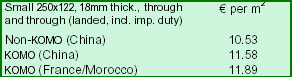 Merbau purchases by Dutch importers slid as stocks rose after steady buying at increasing prices CNF Rotterdam. Merbau¡¯s sales triggered when iroko was only available in small volumes at high prices. The available volumes of merbau were dosed and spread over a long period, avoiding the market getting rapidly saturated. Since the supply situation of iroko