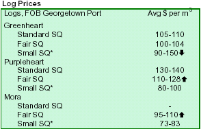 joinery components. Export logs from Central African Republic are much reduced because of tighter control at