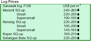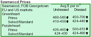 previous years. The recovery in sapele sawnwood prices gained momentum with a further rise of .20 per m3.