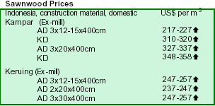 Sawnwood prices were mostly stable or rising in early March. Price changes were due to the low supply