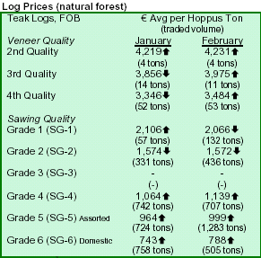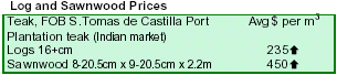 (450 tons). The table below shows the average prices for various grades of teak logs sold by MTE, at their sealed