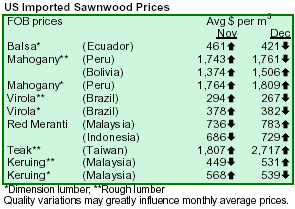 imported volume (26% of the value). The West African region recorded a significant increase in the volume of its timber exports to the USA during the past 5 years. As prices for African mahogany advanced, the increase in value terms was even more pronounced. Apart from West Africa, Ecuador and Brazil are also suppliers of a small quantity of tropical logs to the USA.