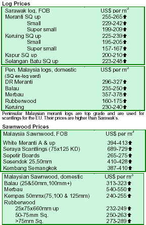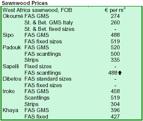 Although West African sawnwood prices were stable in late April after gains achieved earlier in the month, the market is active and producers are very firm in their current price offers. As with logs, West African producers are well aware of the rising prices, tight supply and longer lead times for Southeast Asian species, and are certain to press buyers into higher price levels through the second quarter.