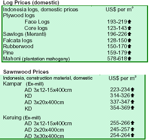 prices had increased by 4.7% in the first quarter of 2006,pushing up energy costs as electricity is generated by diesel engines. Some producers anticipate that timber prices could increase by up to 35% at sawmill yards. Current board feet prices are at $0.60 for tornillo and $0.48 for cumaru and masaranduba.