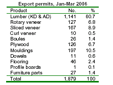A total of 1,879 export permits were issued to exporters during the first quarter of 2006 (see table) for the