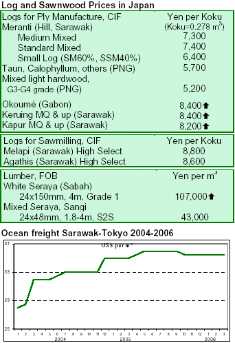 available volumes, plywood export prices continue to edge up. In Japan, prices for imported plywood, which