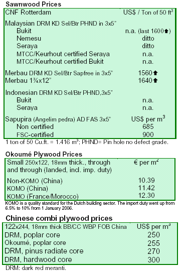 (sipo/utile, sapele). The greater focus on sapele is moving prices up both free delivered and CNF Dutch port,