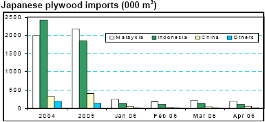 contrast, supplies from Malaysia grew 9.6% to 836,000 m3 in the first quarter of 2006,