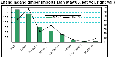 Zhangjiagang Port reached 992,000 m3 worth $224 million during January to May 2006, up 37%