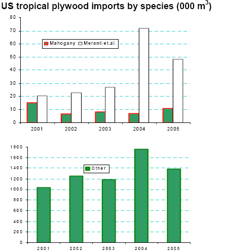 All other US tropical plywood imports experienced a growing trend between 2001 and 2005,
