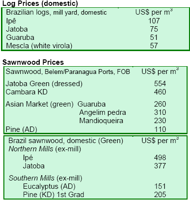 current average prices at $190 per m³, according to ABIMCI. In Europe, prices slid 5% in the same period as a result of the