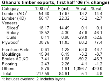 exports fell 5.1% to 217,590 m3 (down 4.8% to €84.9 million) in the first half of 2006, compared with the same