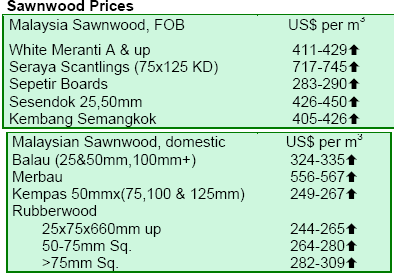 over-capacity detrimental to the industry. Overall, prices for most Malaysian timber products remain steady.