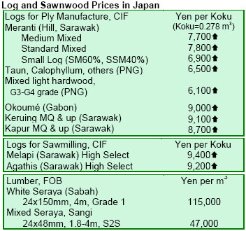 of log shortages. He predicted that Malaysia would export to Japan about 2.5 million m³ this year. Malaysia was