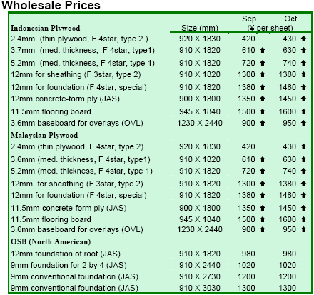 supply. Overall supply of these important plywood products was tight in Japan as manufacturer’s inventories