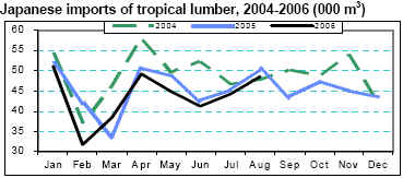 Japan’s imports of Southeast lumber amounted to 46,600 m3 in August (see chart).