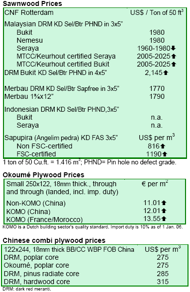 CNF Rotterdam prices for dark red meranti (DRM) would hold firm as exporters would have great difficulty in