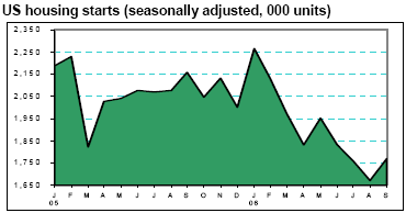 downturn of the US housing sector. The median price of a new home fell to $217,100 in September, down 9.7% from