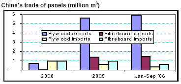 The expansion of Chinese plywood and fibreboard exports in recent years is well known. China has transformed itself