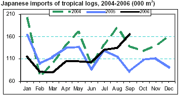 Tropical log exports to Japan were anticipated to decrease toward the end of 2006 and early 2007 due to reduced