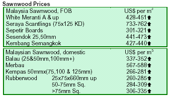 remained buoyant as demand from Japan was steady. Sawntimber prices were picking up steadily as orders from