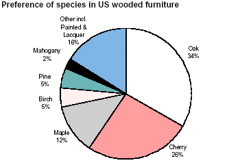 Wood species used in US furniture: oak dominates