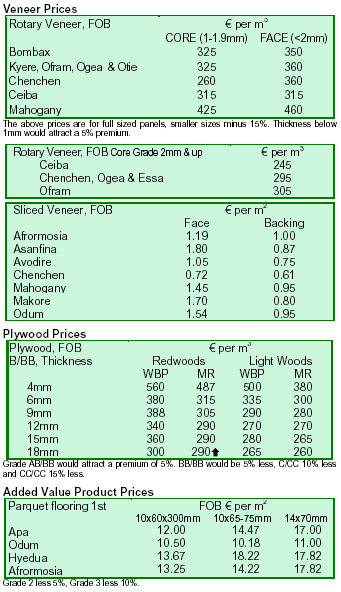 International Plywood and Veneer Prices