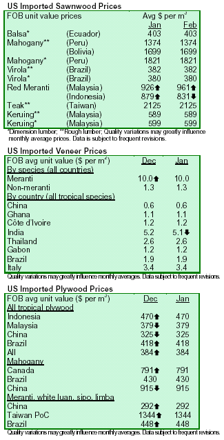 of tropical hardwood imports fluctuates with the economic cycle in the USA. On a volume basis, it has been