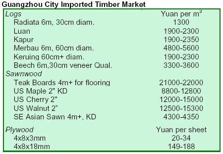 demand for natural timber and wood products from furniture production bases in China, especially those in