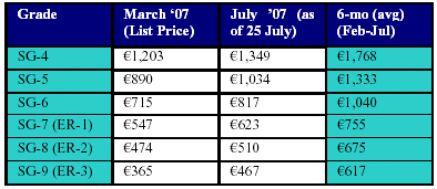 The European market was very quiet with virtually no buying activity due to the vacation period. At