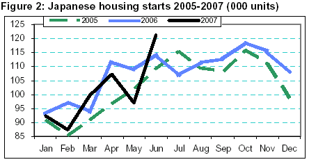 Total housing starts increased 6.0% from May 2007, after experiencing declines in April and