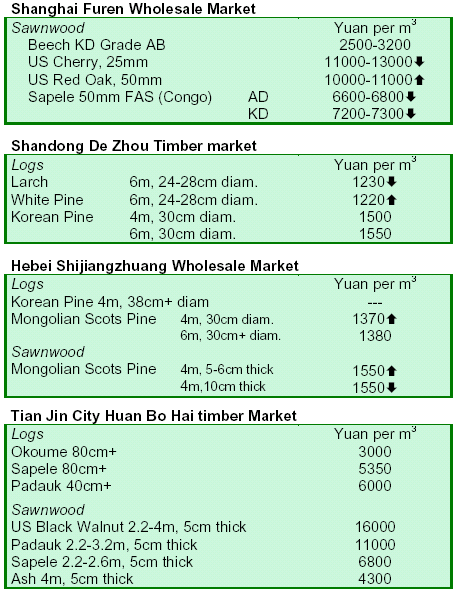 sapele. Timber traders in China must deliver their old stock to buyers due to the limited stock. As a result, the price for
